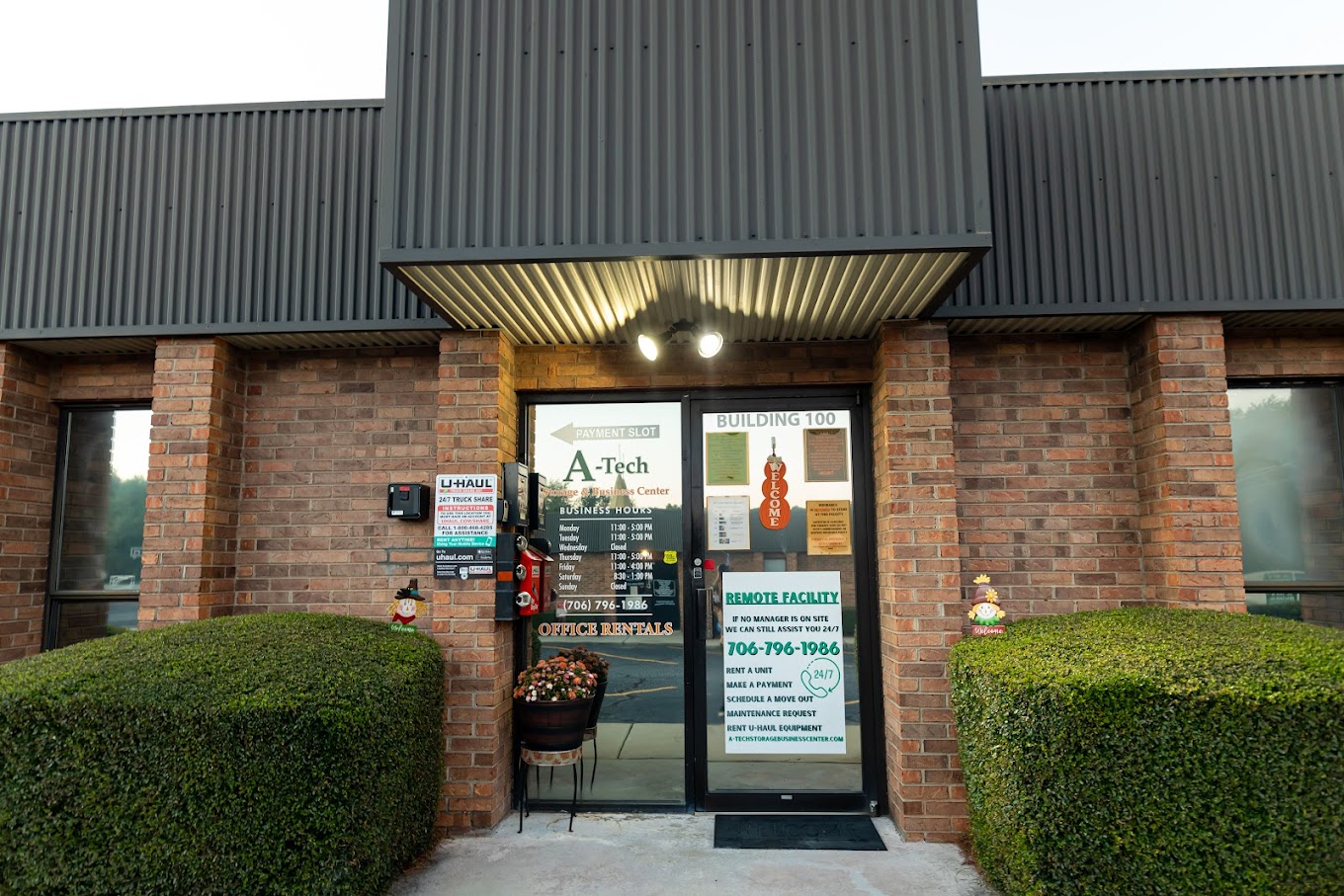 A-Tech Storage also has office and warehouse rentals available with yearly leases. We provide cost effective office space for small businesses and office/warehouse combination spaces for a business that requires loading dock, bay doors and office space. The sizes range from 180 sq. ft. to 5000 sq. ft.